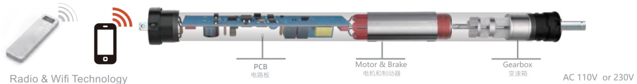 Az AC Tubular Motors erős kompatibilitással és alacsony költséggel, egyszerű szerkezettel, nagy tartóssággal, alapvető intelligens vezérléssel rendelkezik, könnyen integrálható, automatizáláshoz használható ablakredőnyök / ajtóredőnyök / redőnyök.