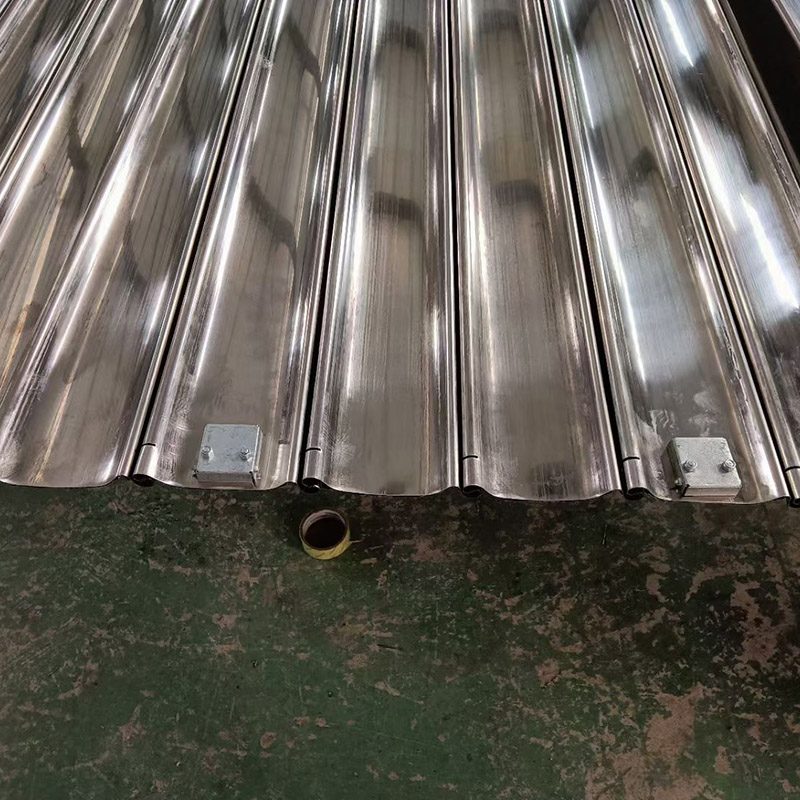 (2) Ajtótest szerkezete: A rozsdamentes acél redőnyajtó panelek lehetnek kétrétegű, üreges megerősített szerkezetek, amelyeket reteszeléssel kapcsolnak össze. A vezetősínek jellemzően 2,5 mm-es horganyzott acéllemezből készülnek, beágyazott tömítőcsíkokkal a működési zaj csökkentése érdekében. A görgők rozsdamentes acél magból + duplacsapágyas nylonból készülnek.